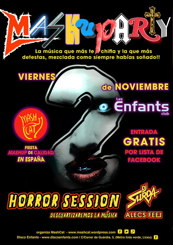 Este Viernes 02 Les Enfants de Barcelona os vuelve a proponer una MashuParty con DJ Surda y Alecs Feel. Habrá un set inspirado en la noche de Halloween: vamos a decsuartizar tus temas predilectos!!