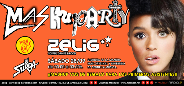 Si crees que los top40 no son para ti o estas cansado de etiquetas y complejos musicales o simplemente harto de oír siempre la misma fórmula musical, el Equipo MashCat (DJ Surda, Playskull DJ y Alecs Feel) te reta a que el próximo sábado 28 acudas a Zelig para disfrutar de una nueva manera innovadora y divertida de sentir la música con una selección de mashup y bootlegs a cargo de DJ Surda.