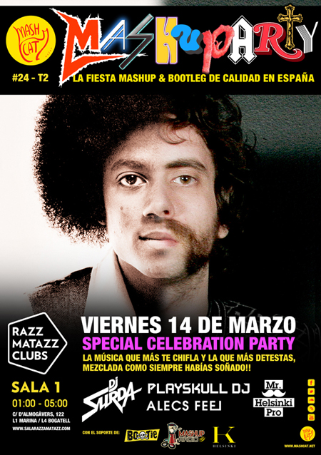 Posted: marzo 5, 2014 Filed under: Directos, DJs de Mashup, DJs de Mashup de España, Mashup, Mixtapes de Mashup, Noticias y más | Tags: Alecs Feel, Aniversario, Dj. Surda, Equipo MashCat, Helsinki Pro, MashuParty, MashuParty Razzmatazz, Mr. Helsinki, Playskull DJ, Sala 1 Razzmatazz, Sala Razzmatazz, Temporada 2 3 Comments »MashCat celebra su 2º aniversario con una MashuParty por todo lo Alto: viernes 14 de marzo, Sala 1 de Razzmatazz con DJ Surda, Playskull DJ y Alecs Feel (Equipo MashCat) y Mr. Helsinki Pro como invitado especial.