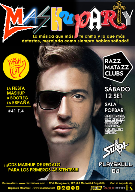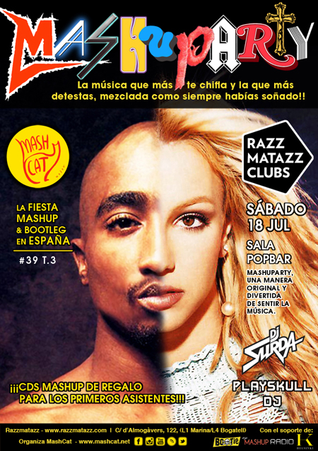 Sólo en la MashuParty, la primera fiesta de mashups en España (y prácticamente la única de su género), podréis disfrutar de los mejores mashups del momento y del pasado. El Equipo MashCat (DJ Surda y Playskull DJ) se encargan mes a mes de llevar esta cultura tan peculiar a una de las mejores salas del país (sino la mejor): Sala Razzmatazz, en el Pop Bar. ¡La fiesta está más que asegurada!