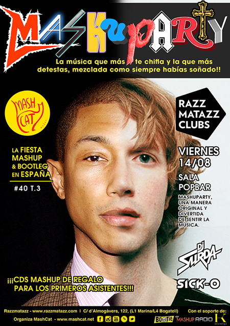 Sólo en la MashuParty, la primera fiesta de mashups en España (y prácticamente la única de su género), podréis disfrutar de los mejores mashups del momento y del pasado. El Equipo MashCat (DJ Surda y Playskull DJ) se encargan mes a mes de llevar esta cultura tan peculiar a una de las mejores salas del país (sino la mejor): Sala Razzmatazz, en el Pop Bar. Además, este mes contaremos con el regreso de Alecs Feel tras un año de su última aparición. ¡La fiesta está más que asegurada!