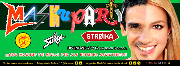 Posted: diciembre 25, 2013 | Author: djsurda | Filed under: Directos, DJs de Mashup, DJs de Mashup de España, Noticias y más | Tags: Dj. Surda, Manresa, MashuParty, MashuParty Stroika, Sala Stroika | Leave a comment »Arriba a la Sala Stroika de Manresa DJ Surda amb un Set de Mashups per petar les nits de Nadal!!