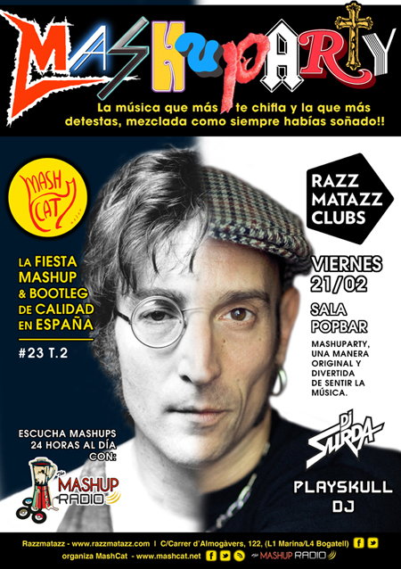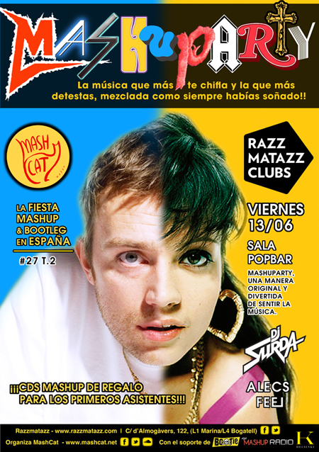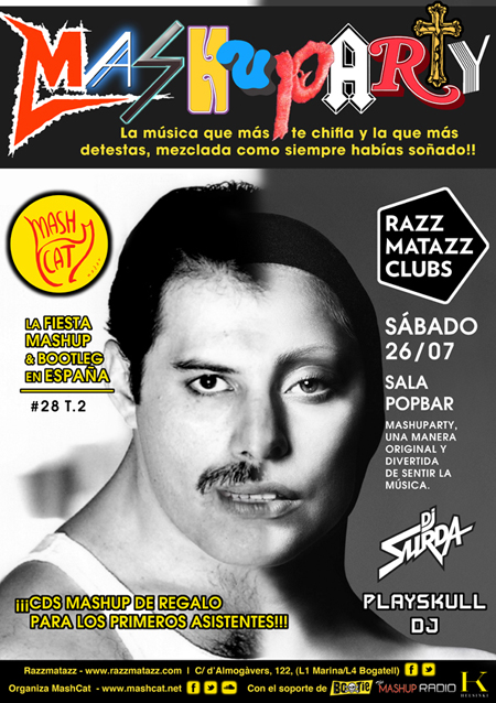 Única en su género en toda España, la MashuParty encara el final de su segunda temporada con la llegada del veranito y los extranjer@s. Podréis disfrutar de los mejores mashups a cargo del Equipo MashCat (DJ Surda y Playskull DJ) cada mes en una de las mejores salas del país (sino la mejor): Sala Razzmatazz, en el Pop Bar. Atrévete y descubre y disfruta de lo mejor del género mashup y bootleg, (mezclas irreverentes entre la música que te chifla y la que más detestas), combos que te sorprenderán, te harán reír, alucinar, enfadar, etc. ¡De buen seguro que indiferente no quedarás!
